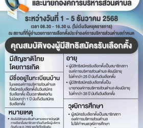 ประชาสัมพันธ์ คุณสมบัติและลักษณะต้องห้ามของผู้สมัครรับเลือกตั้งสมาชิก อบต.และนายก อบต.... วันที่ 17 พ.ย. 2568 (ดูู 40) |