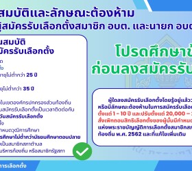 ประชาสัมพันธ์ คุณสมบัติและลักษณะต้องห้ามของผู้สมัครรับเลือกตั้งสมาชิก อบต.และนายก อบต.